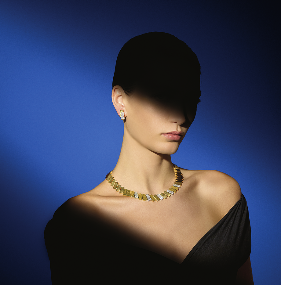 Οι μπάρες χρυσού, αιώνιο σύμβολο δύναμης γίνονται έμπνευση για την σειρά υψηλής κοσμηματοποιΐας Gold Bars με εντυπωσιακά περιδέραια, σκουλαρίκια και δαχτυλίδια, από σφυρήλατο χρυσό 22Κ, λευκό χρυσό και διαμάντια. Κομμάτια επένδυση που όμως ξεχωρίζουν για την θηλυκή πλευρά τους.